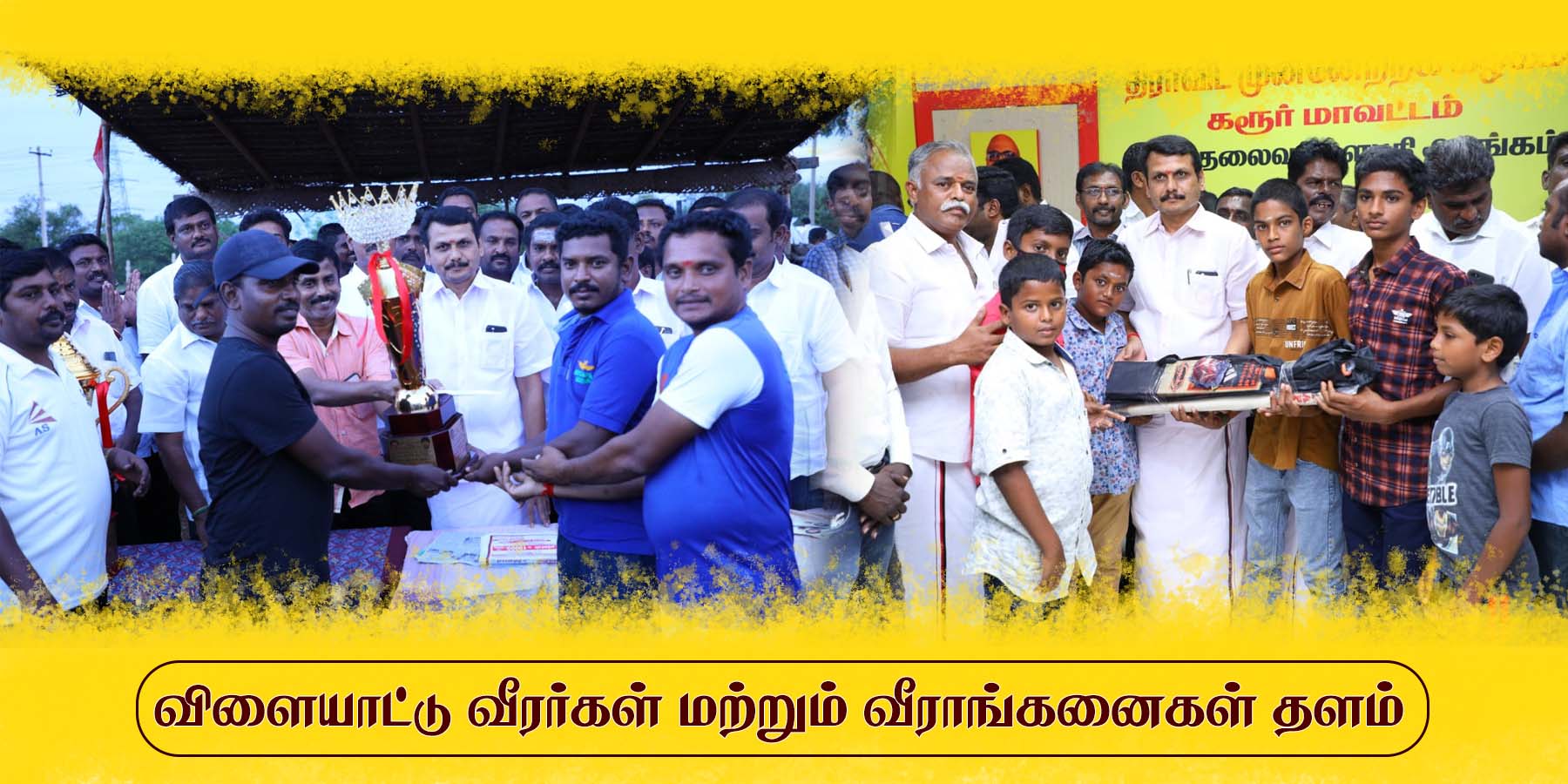 கரூர் மாவட்டத்தின் விளையாட்டு வீரர்கள் மற்றும் வீராங்கனைகள் உடல் நலனை கருத்தில் கொண்டு அனைத்து விளையாட்டிற்கான தினசரி பயிற்சி மையங்கள், மைதானங்கள் மற்றும் இலவச உடற்பயிற்சி கூடங்கள் நிறுவப்படும். மேலும் தகுதியுள்ள நம் மாவட்டத்து விளையாட்டு வீரர்கள் மற்றும் வீராங்கனைகள், மாநில மற்றும் மாவட்ட அளவிலான விளையாட்டு போட்டிகளில் கலந்துக்கொண்டு வெற்றி பெற உதவி தொகை வழங்கப்படும். கீழ் உள்ள படிவத்தை பூர்த்தி செய்து உங்களை எங்களுடன்இணைத்துக்கொள்ளுகள்.