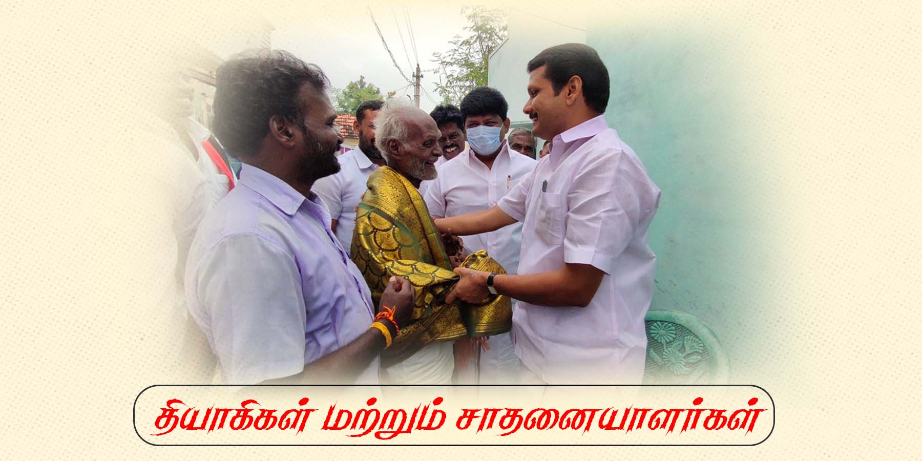 நமது மாவட்டத்தின் பெயரை பறைசாற்றும் வகையில் பாடுபட்ட சுதந்திர போராட்ட தியாகிகள் மற்றும் பல்வேறு துறைகளில் சாதனைகள் செய்த பெரும் மனிதர்களுக்கும் அவர்களுது குடும்பத்திற்கும் தேவைப்படும் உதவிகள் வழங்கப்படும். மேலும் வருடந்தோறும் அவர்களுக்கு விருதுகள் கொடுத்து கவுரவிக்கப்படும். இப்படிப்பட்ட பெருமக்கள் உங்கள் குடும்பத்தை சார்ந்தவர்களோ உங்களுக்கு தெரிந்தவர்களாகவோ இருந்தால் கீழ் கண்ட படிவத்தில் அவர்களை பற்றிய தகவல்களை தெரிவிக்க வேண்டுகிறோம்.